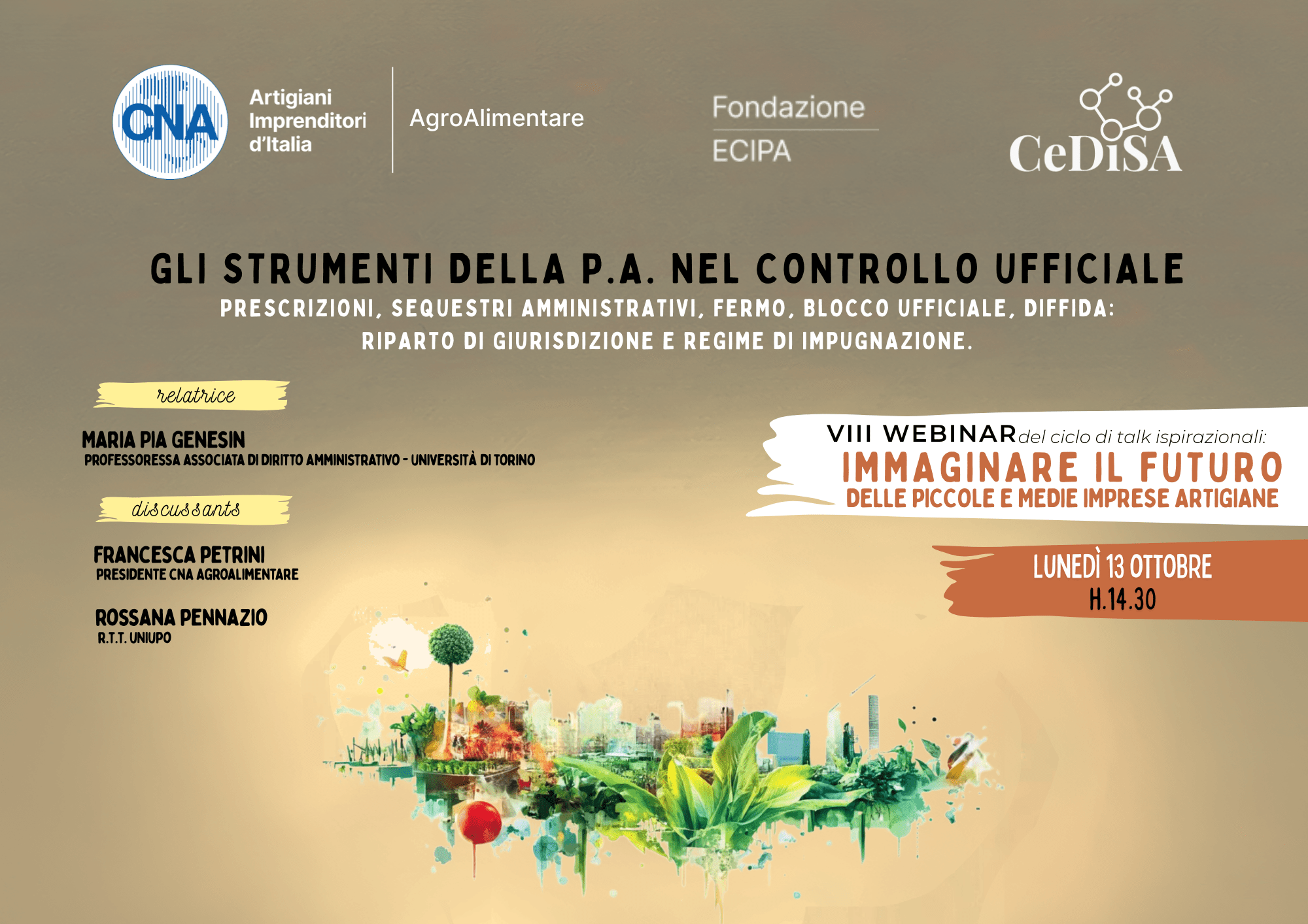 Si terrà il prossimo 13 ottobre con inizio alle ore 14.30 il webinar “Gli strumenti della PA nel controllo ufficiale”, durante il quale sarà possibile approfondire prescrizioni, sequestri amministrativi, fermo, blocco ufficiale, diffida e altri provvedimenti della PA.