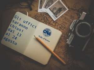 Gli uffici di CNA Valle d’Aosta rimarranno chiusi al pubblico a partire da lunedì 13 agosto. L’attività dell’associazione riprenderà, secondo i consueti orari, da lunedì 27 agosto. Aosta, 7 agosto