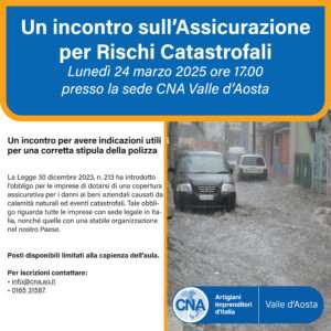 Appuntamento lunedì 24 marzo 2025, alle ore 17 presso la sede di CNA Valle d’Aosta. Posti limitati.