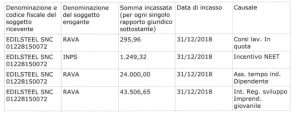 Elenco dei benefici ricevuti da imprese associate – anno 2019