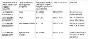 Elenco dei benefici ricevuti da imprese associate – anno 2020