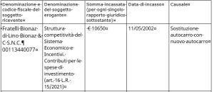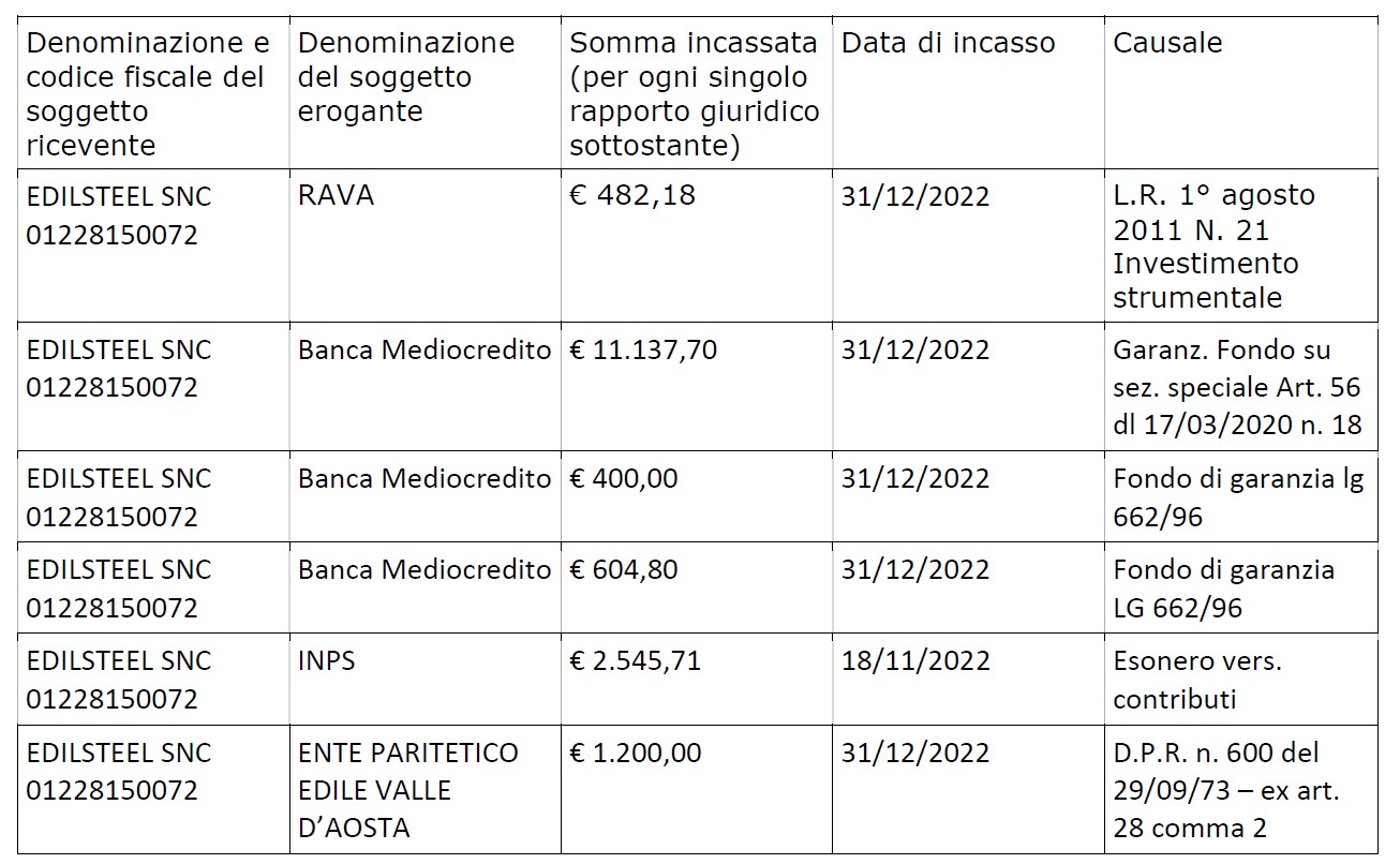 Elenco dei benefici ricevuti da imprese associate – anno 2022