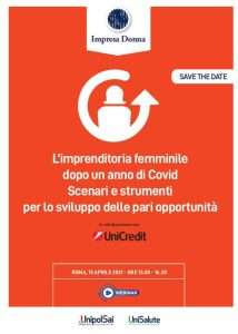 CNA IMPRESA DONNA IN COLLABORAZIONE CON UNICREDIT organizzano un webinar sul tema: “L’imprenditoria femminile dopo un anno di Covid. Scenari e strumenti per lo sviluppo delle pari opportunità” Giovedì, 15 aprile dalle