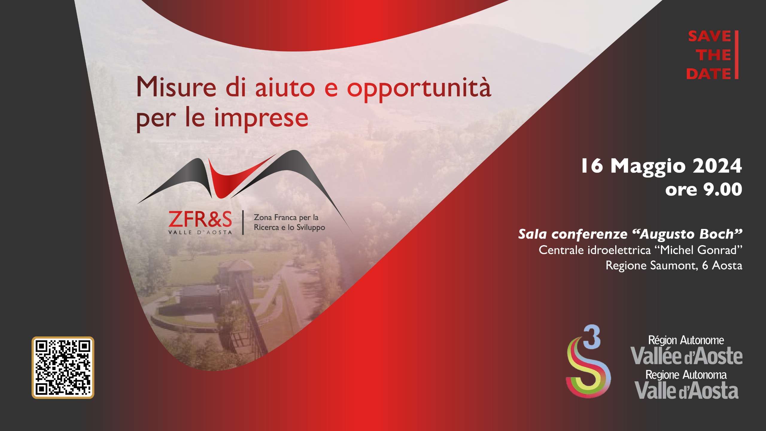 Si terrà il giovedì 16 maggio 2024 alle ore 09.00 presso la sala conferenze “Augusto Boch” della Centrale Idroelettrica “Michel Gonrad” sita in Regione Saumont 6 – Aosta, l’incontro dal titolo “MISURE DI AIUTO E OPPORTUNITA’ PER LE IMPRESE”, organizzato dal Dipartimento Sviluppo economico ed Energia dell’Assessorato allo Sviluppo economico, Formazione e lavoro, Trasporti e mobilità sostenibile.