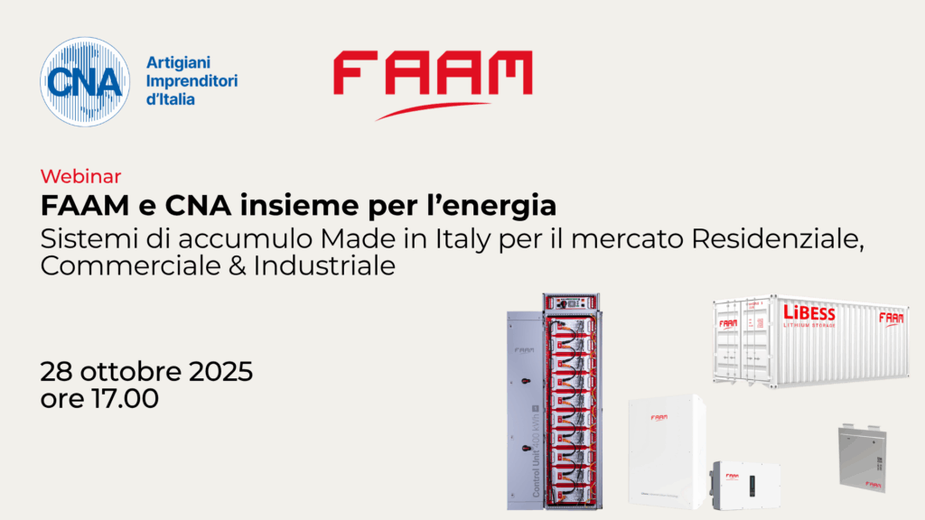 Un’occasione per conoscere da vicino le soluzioni di accumulo energetico FAAM e le opportunità di sviluppo per la filiera della produzione e degli installatori CNA.